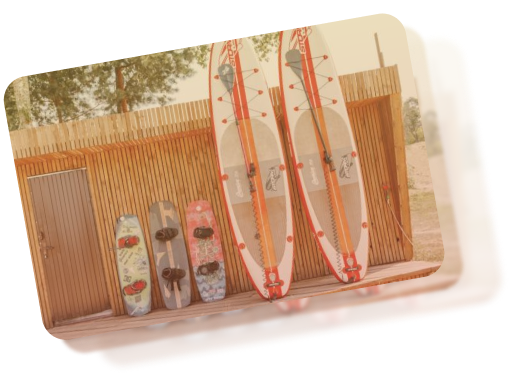 Wakeboarding makes you happy and memorable, and it also helps your body stay healthy. Yoga gives you the opportunity to strengthen your inner spirit and train your strong condition.